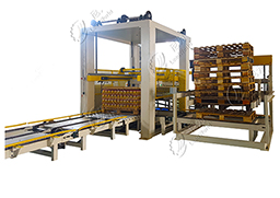 6)本機(jī)設(shè)計(jì)有空棧自動(dòng)收集裝置,升降動(dòng)力電機(jī)加以變頻控制,空棧托舉梁由氣缸帶動(dòng),可自動(dòng)開(kāi)合,碼垛整齊、方正。承載棧板數(shù)量可達(dá)12塊。