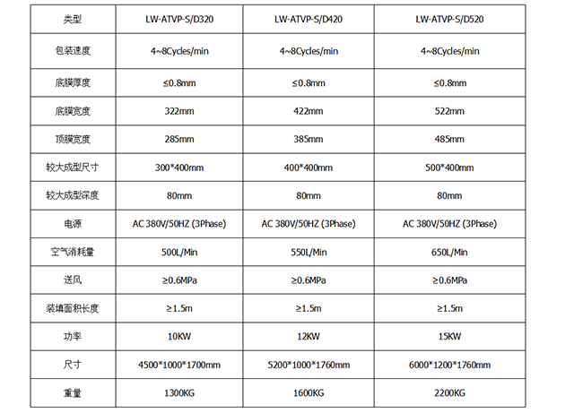 四、全自動真空包裝機(jī)設(shè)備參數(shù):