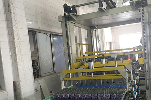 1、自動(dòng)碼垛:罐頭通過鏈道堆積到輸送線上,開動(dòng)機(jī)器,罐頭被吸起并放到指定的位置上,重復(fù)相同的動(dòng)作,直至將罐頭碼成整垛由叉車叉出。