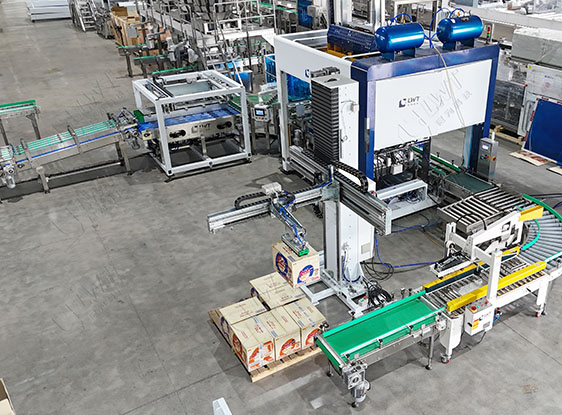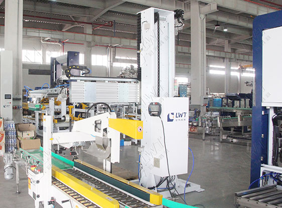 單立柱碼垛機(jī):?jiǎn)瘟⒅a垛機(jī)將封好的紙箱按照一定的排列方式和層數(shù)進(jìn)行碼垛。這一步驟自動(dòng)化程度高,能夠大幅提高倉(cāng)儲(chǔ)效率,減少人工搬運(yùn)成本,并為后續(xù)的物流運(yùn)輸提供便利。