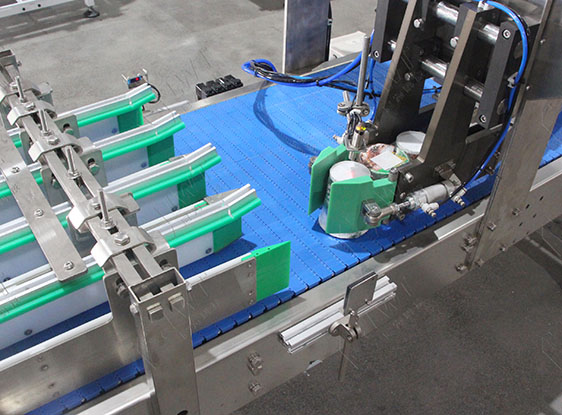 伺服分道機(jī):伺服分道機(jī)利用高精度的伺服控制系統(tǒng),確保桶裝泡面能夠準(zhǔn)確無(wú)誤地分配到各個(gè)裝箱位置。這一步驟的精確性對(duì)于后續(xù)裝箱操作的順利進(jìn)行至關(guān)重要,能夠大幅提升整體生產(chǎn)效率和包裝質(zhì)量。