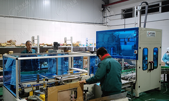 紅豆罐頭食品的加工工藝中,需用自動洗罐、罐裝、封口、自動洗罐、風(fēng)干、開箱機(jī)、裝箱、封箱等工藝,依據(jù)用戶廠房倉庫的面積和產(chǎn)量、罐型等特性,我廠技術(shù)員參觀考察和用戶交流后,項目確定選用自動洗罐機(jī)、風(fēng)干、自動開箱機(jī)、裝箱、封箱等,該江蘇紅豆罐頭食品包裝生產(chǎn)線選用自動化生產(chǎn)線設(shè)備,機(jī)架選用304不銹鋼,西門子PLC電控PLC觸摸屏、使用方便、精度高。
