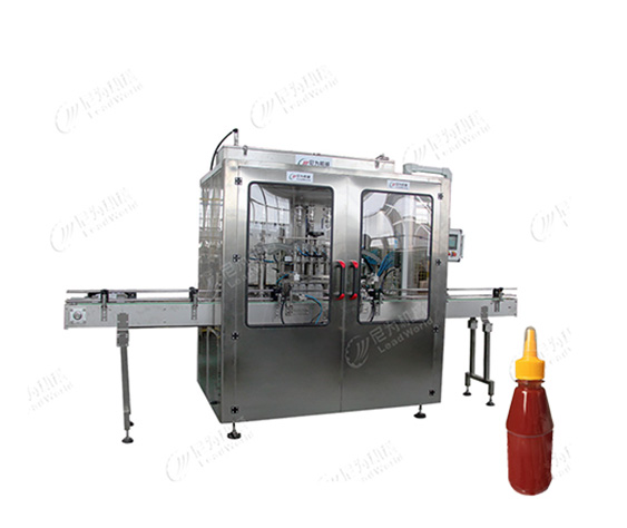該客戶選購的是8頭濃醬灌裝機,使用伺服控制,灌裝精度0.5%~1%,料缸使用電磁閥控制液位,達到一定的量會自動關(guān)閉。軟管使用意大利進口軟管,光電使用德國勞易測光電,清洗:控制屏設(shè)有專門清洗功能,卡箍易拆易清洗,且設(shè)有防滴漏裝置。