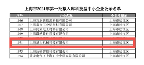 近日,根據(jù)《科技型中小企業(yè)評價辦法》,上海尼為機械科技有限公司被認定為上海市2021年第1批擬入庫科技型中小企業(yè)。這是我司在科技創(chuàng)新型企業(yè)發(fā)展道路上取得的喜人成果,是有關(guān)部門給予我司研發(fā)和創(chuàng)新能力的認可。